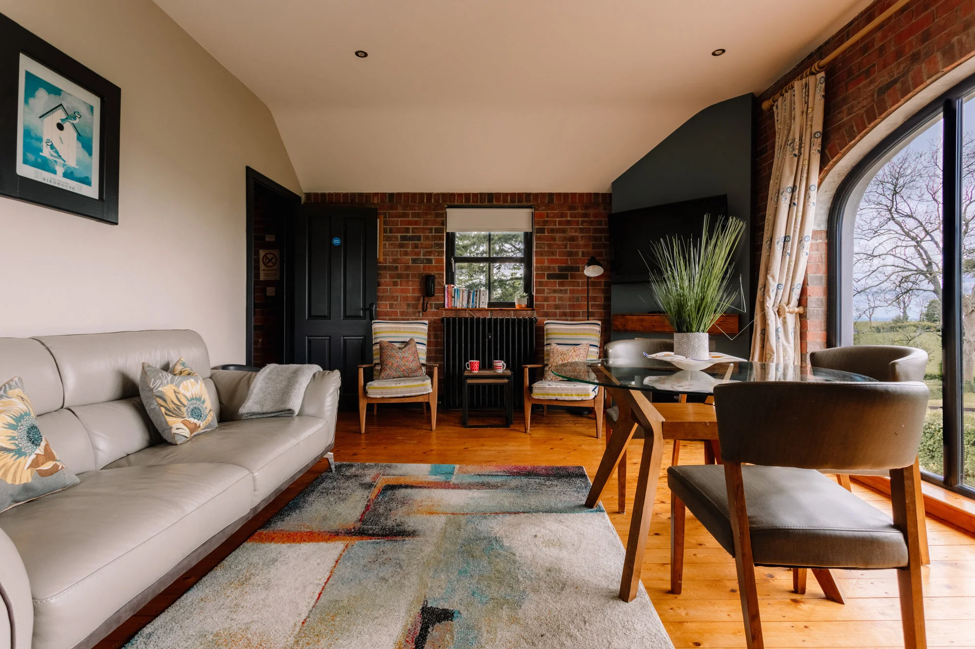 The Barn is NITB 4 Star approved and furnished with an eclectic mix of colours. To decorate we have used traditional Irish crafts, knits and embroideries, shabby chic in style. It has a strong heritage feel throughout with features including cast iron radiators, exposed brick and wooden floors. The kitchen has everything you need to cook for a short stay. This accommodation has external steps leading to the entrance so it is not suitable for guests with mobility issues. Please note dining and seating space is for 5. At maximum capacity, there is little space for entertaining but if guests have family or friends visiting, they are welcome to use the space in the main guest house and can be discussed before arrival.